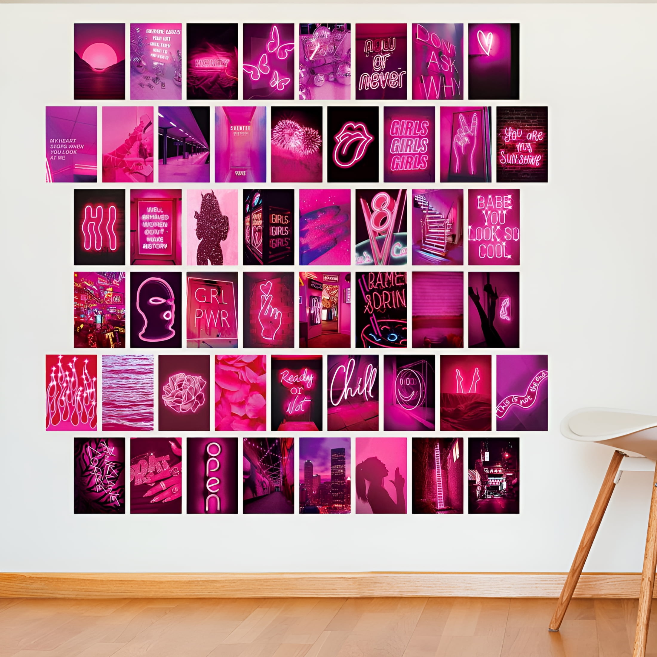 CCOCC 50 Pack Pink Wall Collage Kit Aesthetic Pictures Bedroom Decor for Teen Boys and Girls Room Decor Aesthetic Posters Set Boho Wall Art