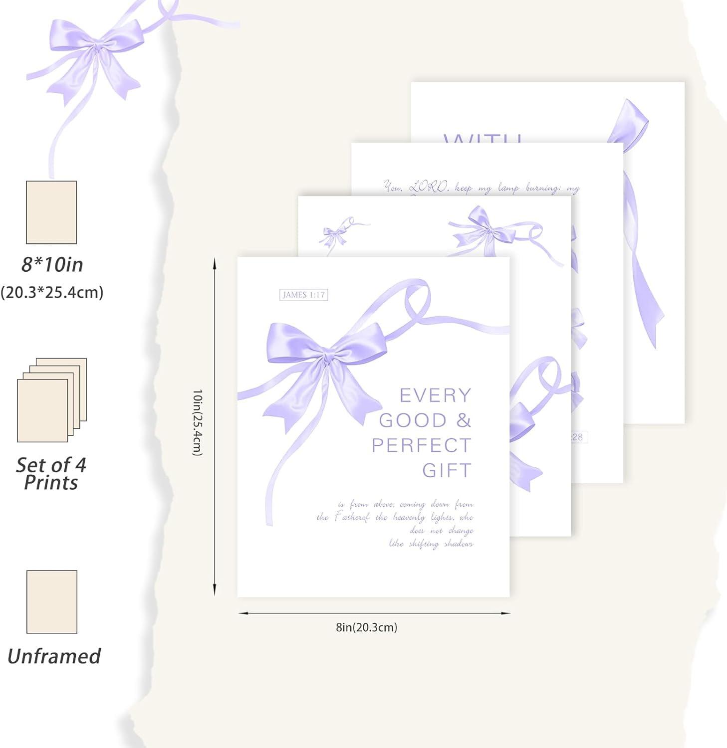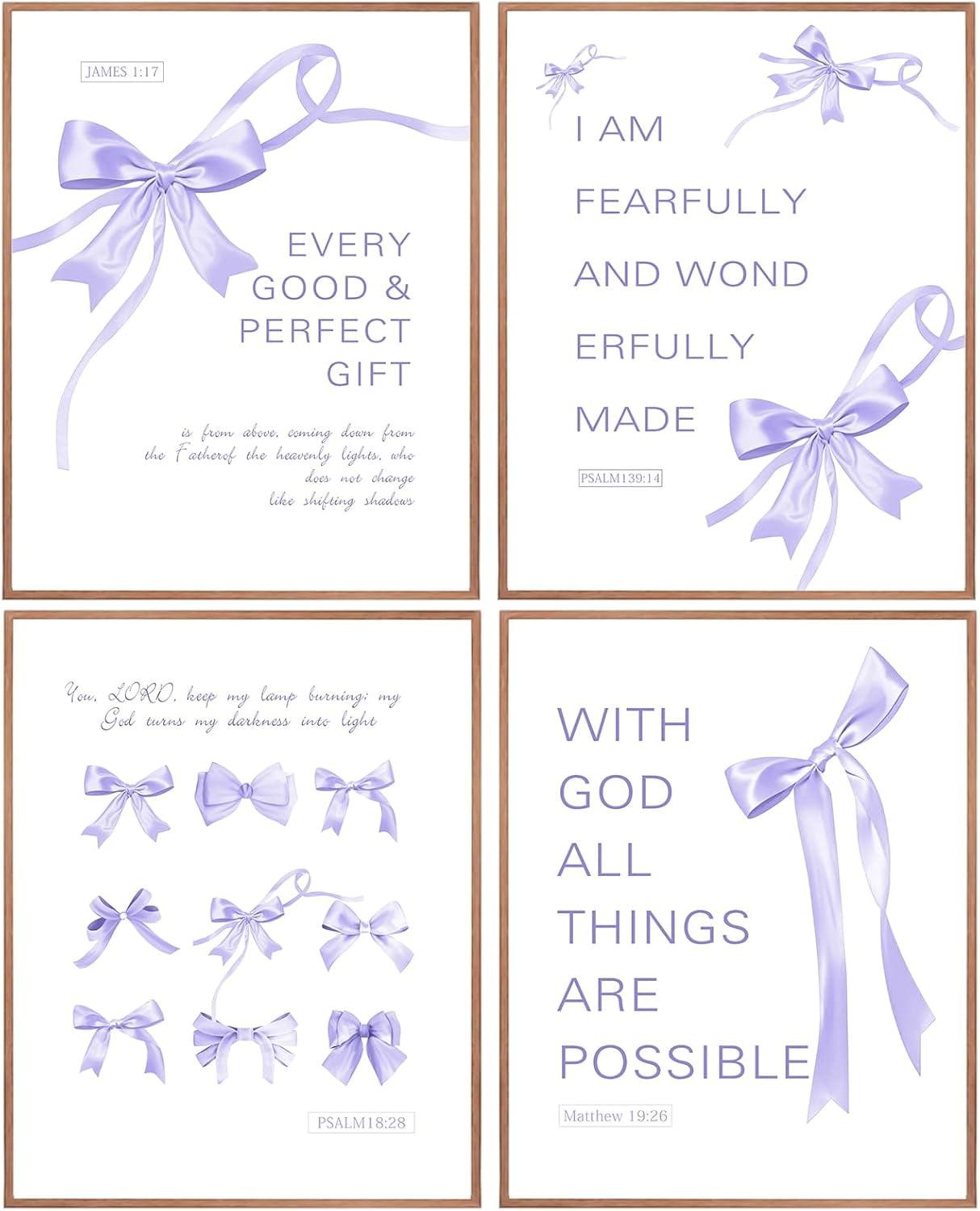 Coquette wall decor teen girl room purple bow wall art decor posterspirational Bible Verses Bow Wall Deco (unframed)