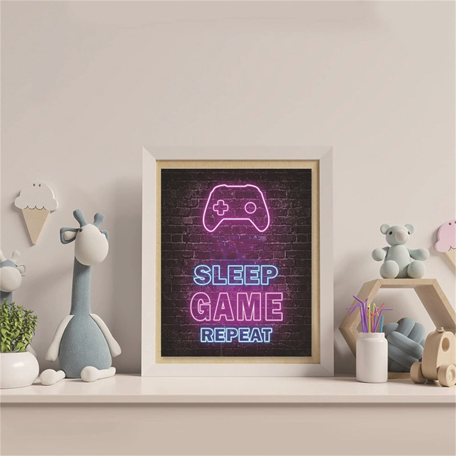 MORE THAN JUST POSTERS: This versatile collection serves as both standout video game posters and iconic wall signs, offering layered gaming wall decor. COHESIVE NEON THEME: All pieces share a unified neon art aesthetic, creating a professional, gallery-like feel for your gaming setup decor. IDEAL FOR TEEN ROOMS: Specifically curated to excel as teen boy room decor, these pieces speak directly to youth culture and gaming enthusiasm. DEFINE YOUR GAMER SPACE: Use these as focal points to establish and enhance your boys gamer room decor, making the room uniquely yours. EASY TO CUSTOMIZE & ARRANGE: Mix and match the included gaming poster designs and signs to build a custom layout that fits your wall perfectly.