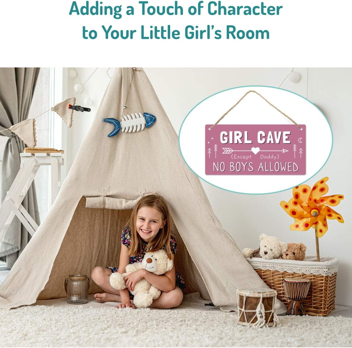 Girl Cave Sign, Teen Girls Room Decor, 12 * 6 Wall Hanging Decoration, Girls Only No Boys Allowed Except Daddy for Little Girls Bedroom
