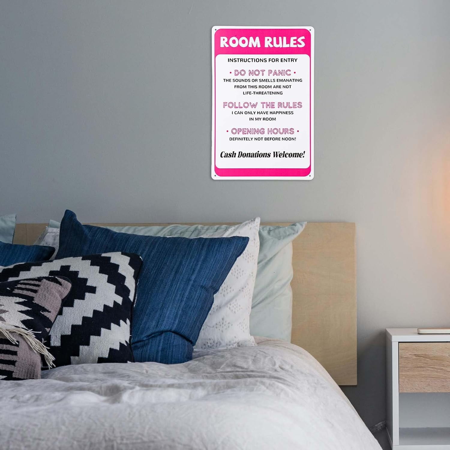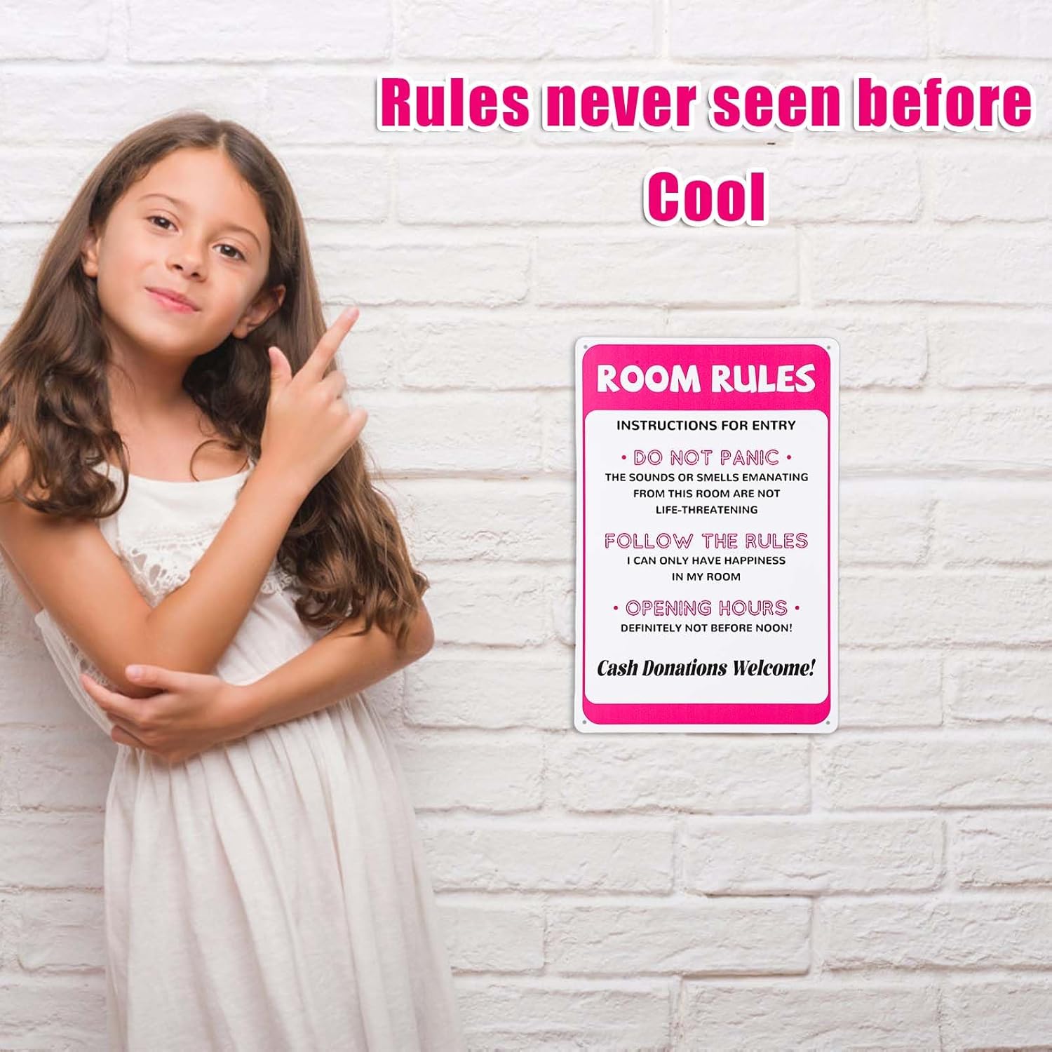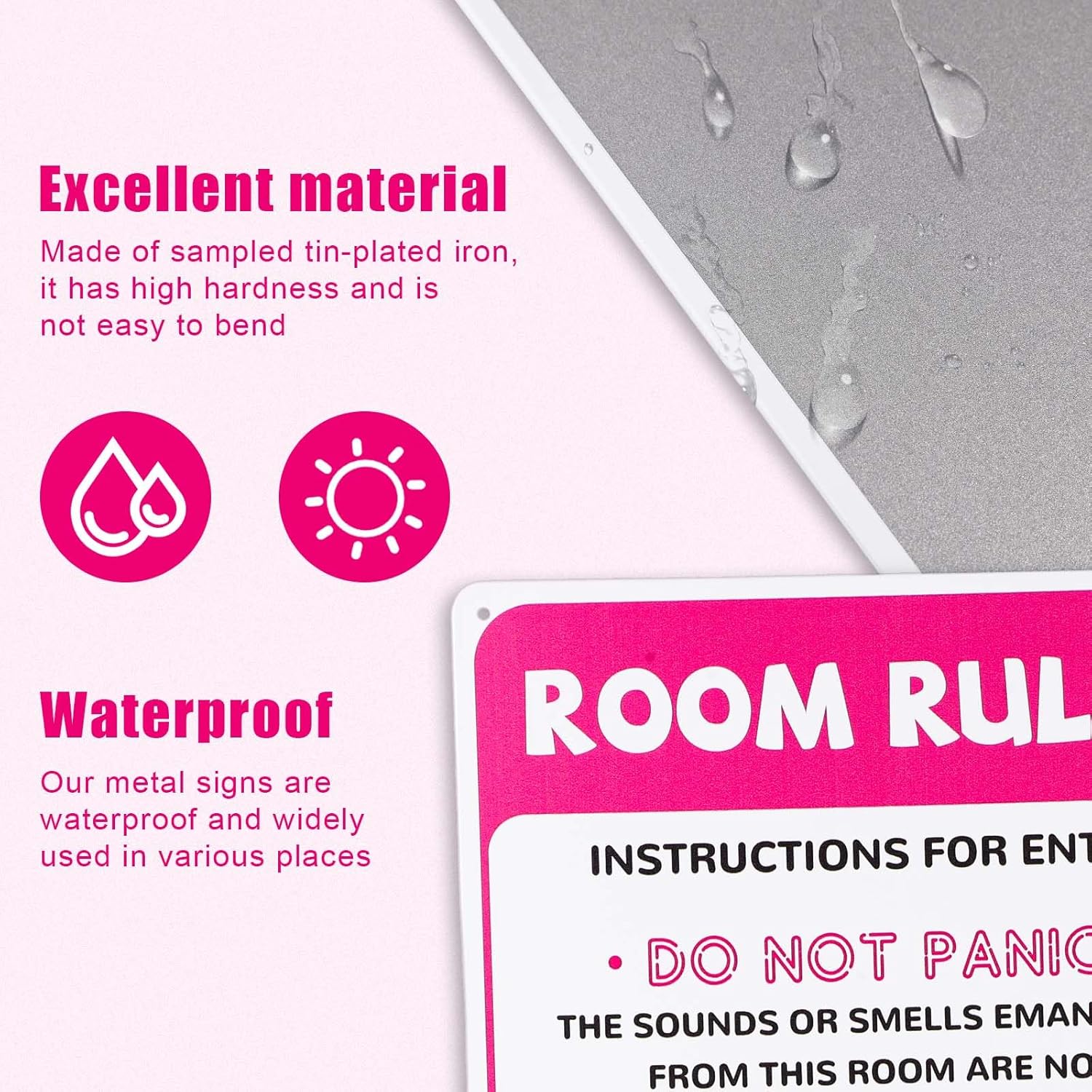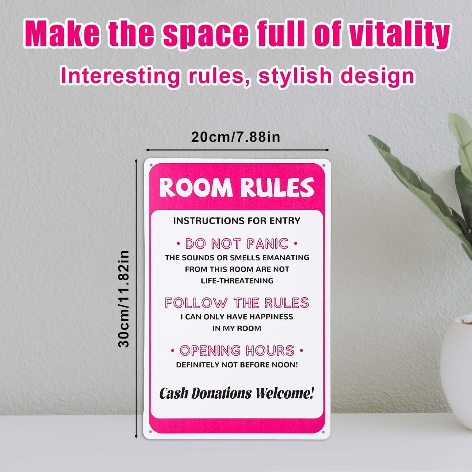 Product Content: You will receive 1 piece of room rules sign, measuring about 12x8in/30x20cm, which can be an interesting decoration. Premium Material: The pink room decor rules sign is made of premium quality metal, with higher hardness, less bending, not easy to deform or fade. There are four screw holes in the corners, which can be installed with double-sided foam tape or nails, providing you a lot of convenience. Special Design: The room rules sign is carefully designed to match the room decoration, especially popular in teenage girls’ rooms. The simple and interesting design can bring joy to girls. Wide Application: The stylish and cute aesthetic of the sign makes it versatile, can be a fun and attractive decoration to hang directly on the wall or door of teen girls’ bedrooms. Nice Gift: You can give it as a collection or gift to your family or friends on birthday, Christmas, graduation or room renovation.