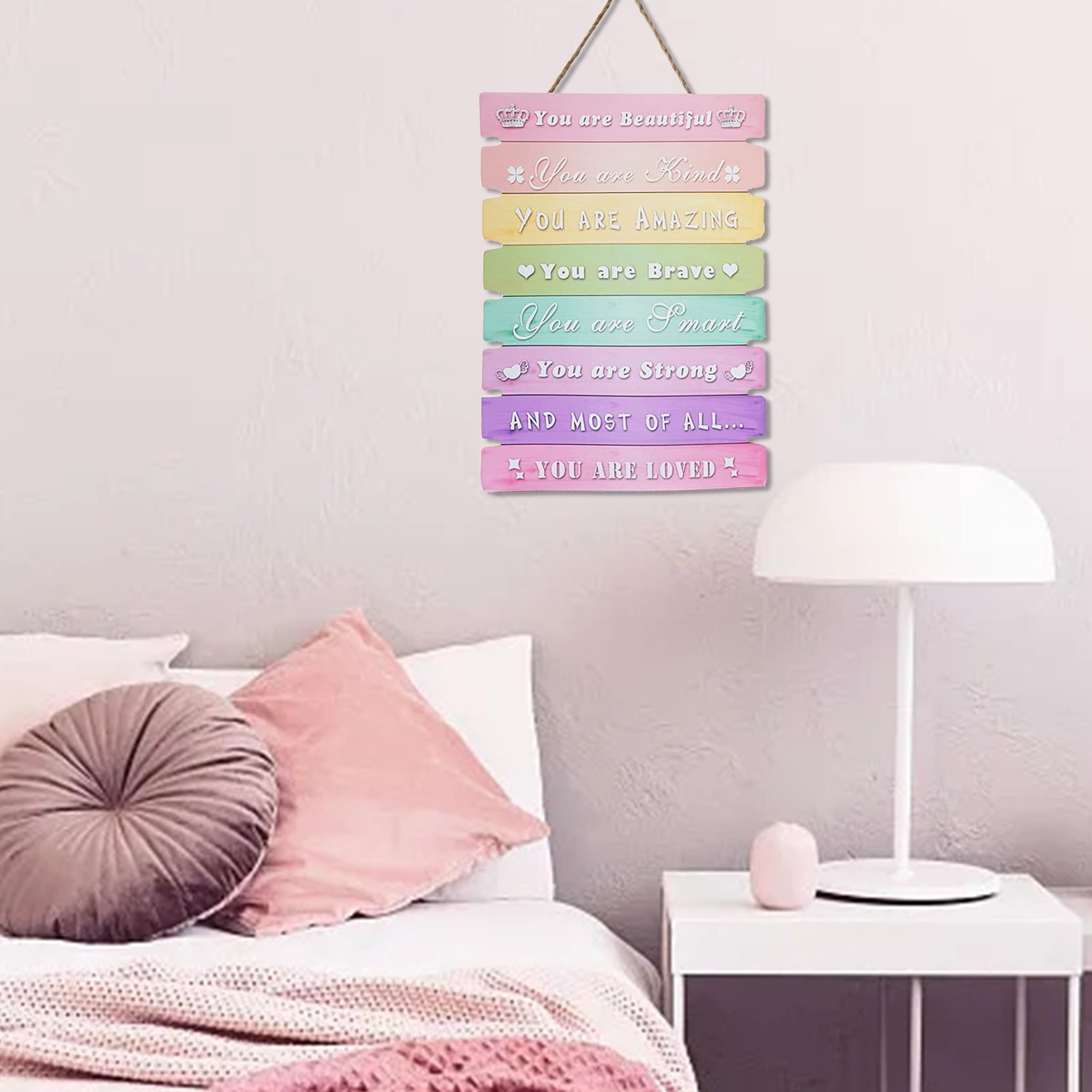 + Free ShippingTeen Girl Room Rainbow Inspirational Kids Bedroom Wall Art Cute Room Pink Baby Little Girl Toddler Room Sign Kindergarten Dorm Contains 1* Girls’ Inspirational Quotes Pendant