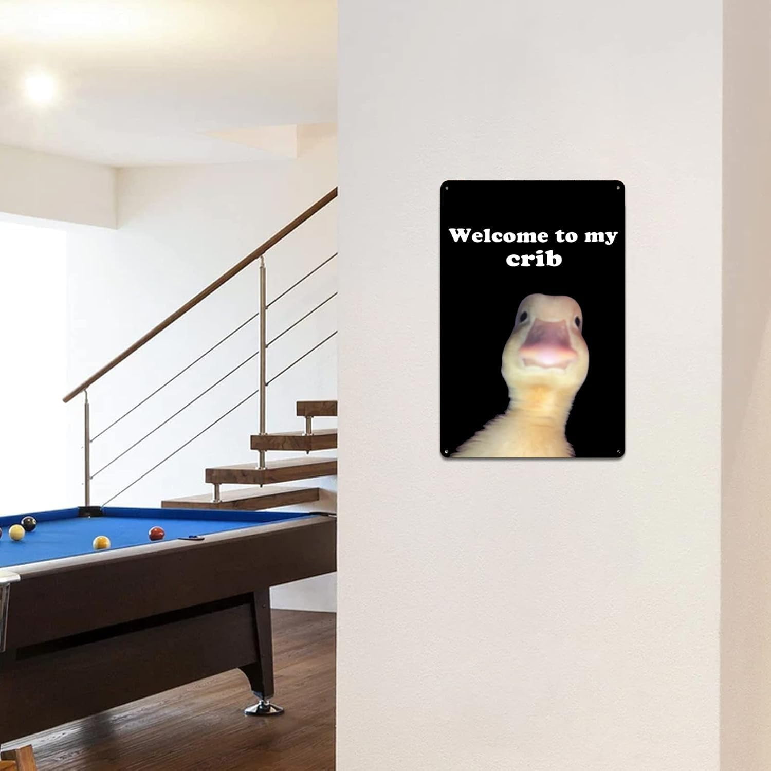 Welcome to My Crib Tin Sign for Teen Girls Boy, Bedroom/Gaming Room Bar Cave Door Decor, Dorm Wall Accessories Cool Things, Funny Metal Tin Signs Funny Decor Cute Thing 12 x 8 Inch